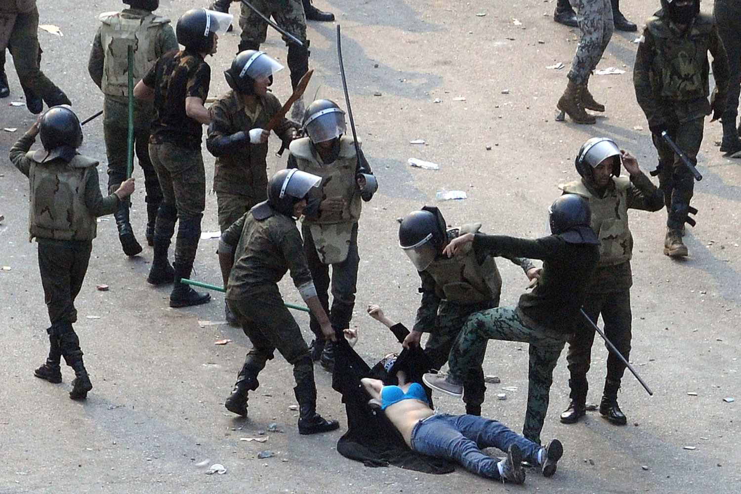 one of the sessions had a panel with nama khalil, a bamf egyptian-american grad student who is doing research on street art arising from the arab spring. one of the most memorable parts of her presentation was an analysis of the “blue bra” photo pasted above. someone captured an image of a woman who wears niqab being beaten by egyptian military police. in their aggression, they pulled up her 3abaye, revealing a cerulean-ish blue bra.